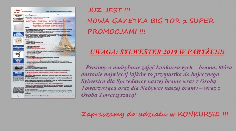 Serdecznie zapraszamy do zapoznania się z nowymi promocjami. Gazetka dostępna jest na : www.bigtor.pl w zakładce DO POBRANIA- GAZETKI PROMOCYJNE.