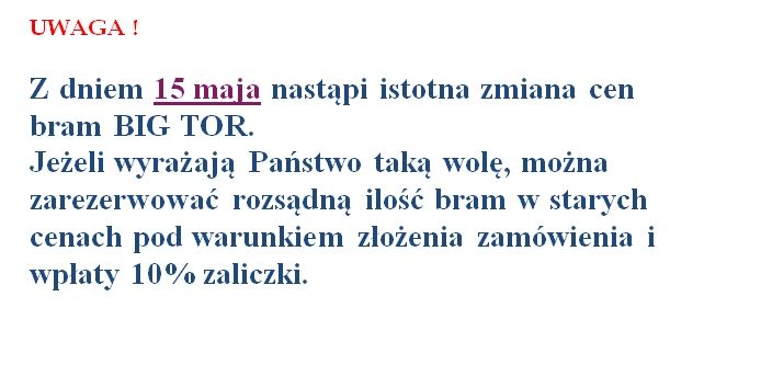 z Biurem Obsługi Klienta: handel@bigtor.pl lub tel.: 52 345 28 82 wew. 79