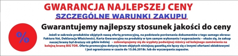 - przeciwwaga zamiast sprężyn w kolumnach bramy – co jest wielką oszczędnością w porównaniu do produktów wykonanych w starej technologii, gdzie co 100 tys. cykli należy wymieniać sprężyny równoważące – koszt takiej wymiany to ok. 5000 zł – przy gwarancji 3 milionów cykli daje nam to zaoszczędzone wydatki na poziomie….lepiej wybrać bramę z przeciwwagą zamiast wymagających wymian serwisowych sprężyn