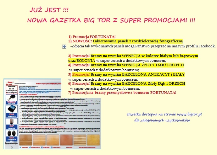Gazetka dostępna jest dla zalogowanych użytkowników na stronie: http://www.bigtor.pl/pl/materialy/gazetki-promocyjne