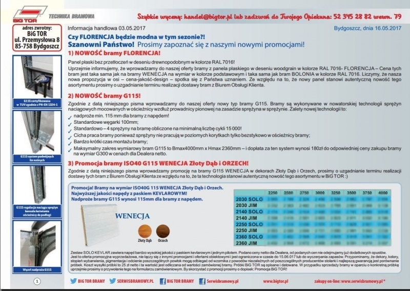 - Promocja na bramy WENECJA oraz BARCELONA