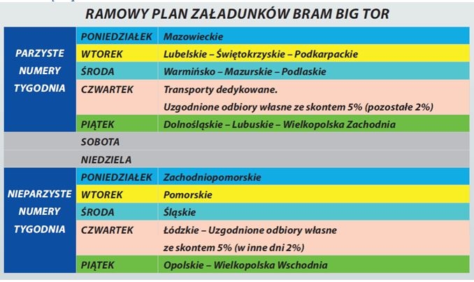 UWAGA! NOWY PLAN ZAŁADUNKÓW W BIG TOR!