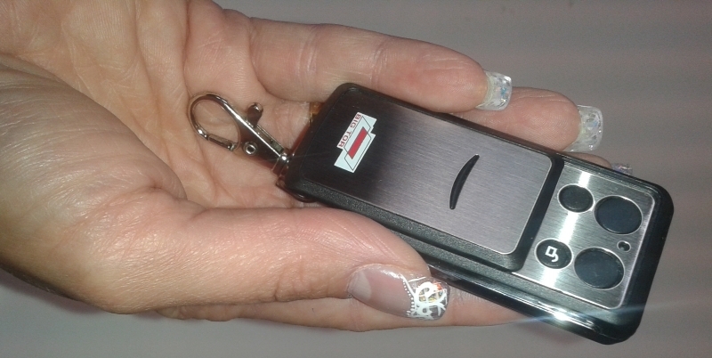 Praktyczny pilot w obudowie ze stali szlachetnej. Jest to nadajnik 3- kanałowy z dodatkowym klawiszem blokady. Wysuwana klapka w pozycji zamkniętej zabezpiecza przed przypadkowym naciśnięciem przycisku np. w kieszeni.